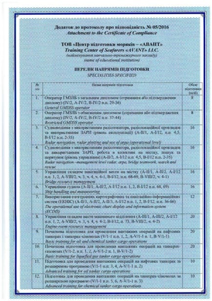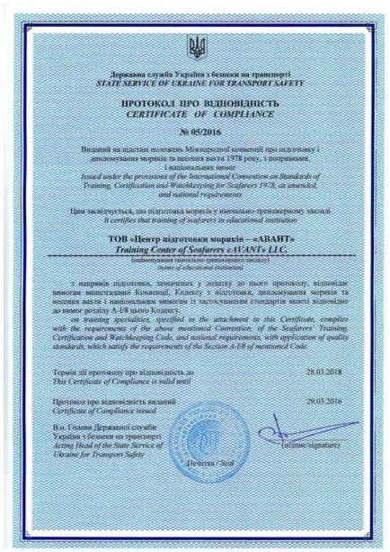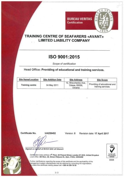 On April 18, 2016 — the Training Centre for Seafarer’s AVANT was approved and certified by Maritime Authority the Republic of Panama as far as 33 training programs.